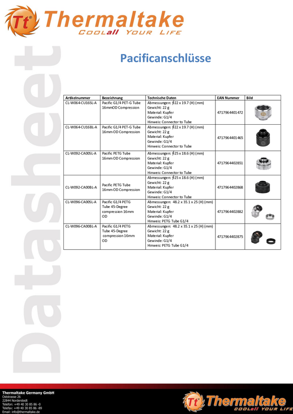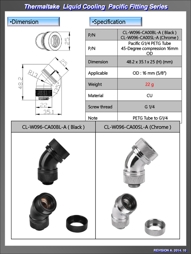 Przyłącze kątowe wody chłodzącej Thermaltake Pacific G1/4 PETG Tube 45-Degree Dual Compression 16mm OD – Chrome