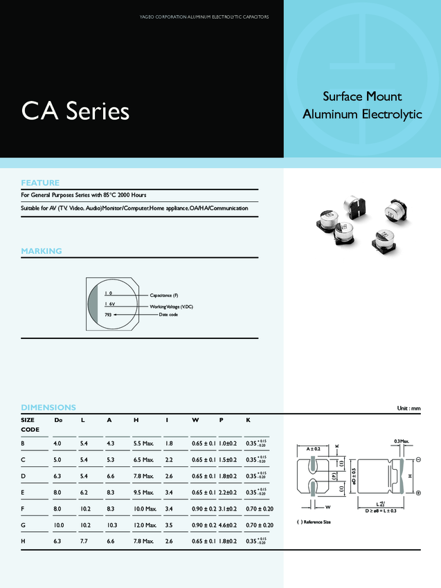 Cap Aluminum 47uF 50V 20% (8 X 10.5mm) SMD 100mA 2000 hr 85°C Embossed Plastic T/R