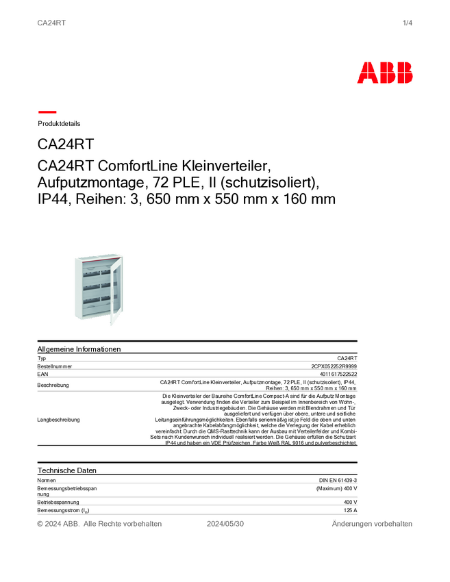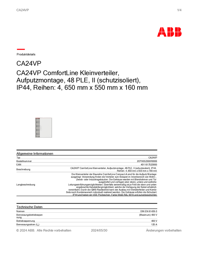 Striebel & John 2CPX052206R9999 CA24VM Rozdzielnica mała nadtynkowy Ilość rzędów = 4 Content 1 szt.