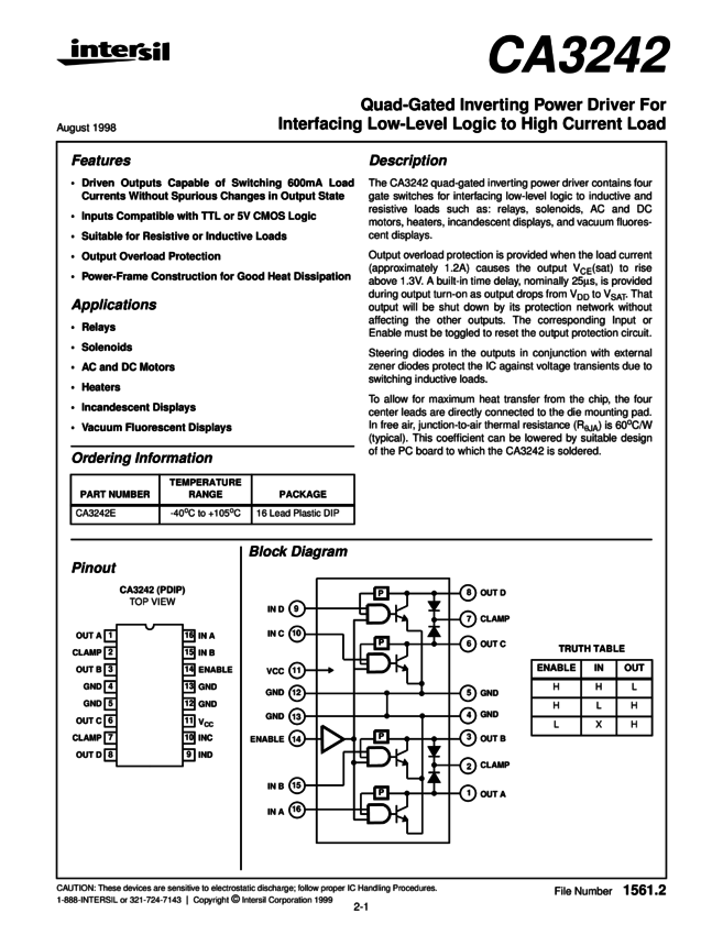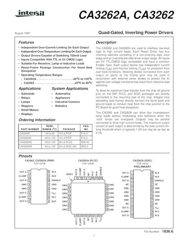Quad-Gated Inverting Power Driver For Interfacing Low-Level Logic to High Current Load
