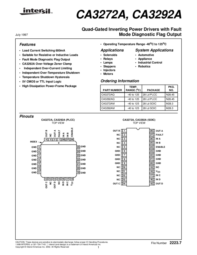 Quad-Gated Inverting Power Drivers with Fault Mode Diagnostic Flag Output