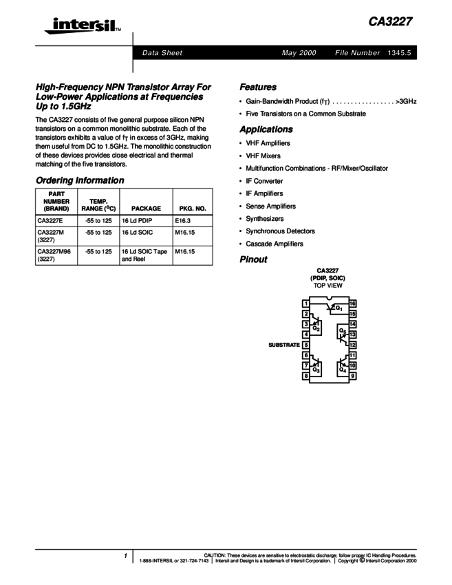 High-Frequency NPN Transistor Array For Low-Power Applications at Frequencies Up to 1.5GHz