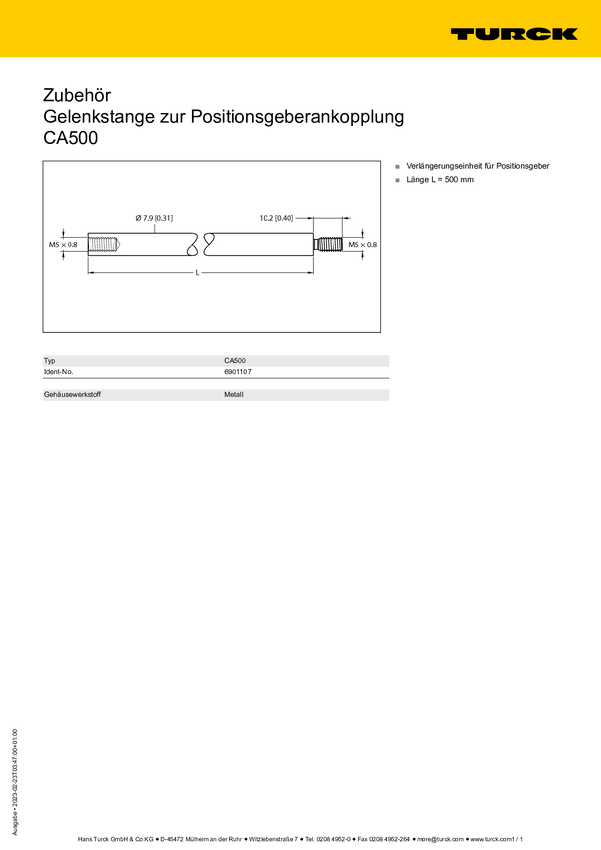 Turck 6901107 Pręt na zawiasach CA500 1 szt.