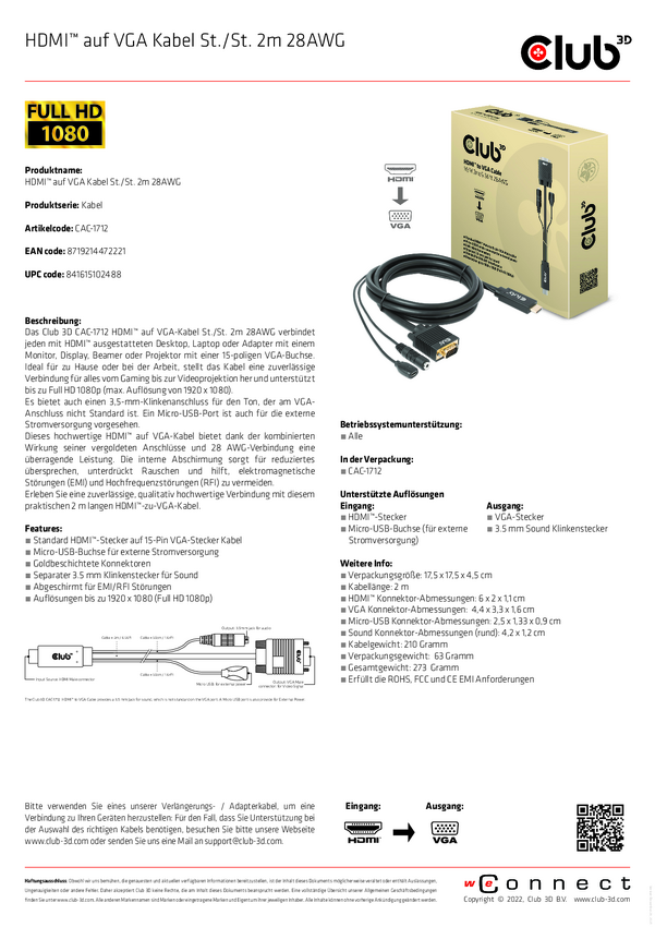 adapter HDMI, Jack, Micro-B USB, VGA