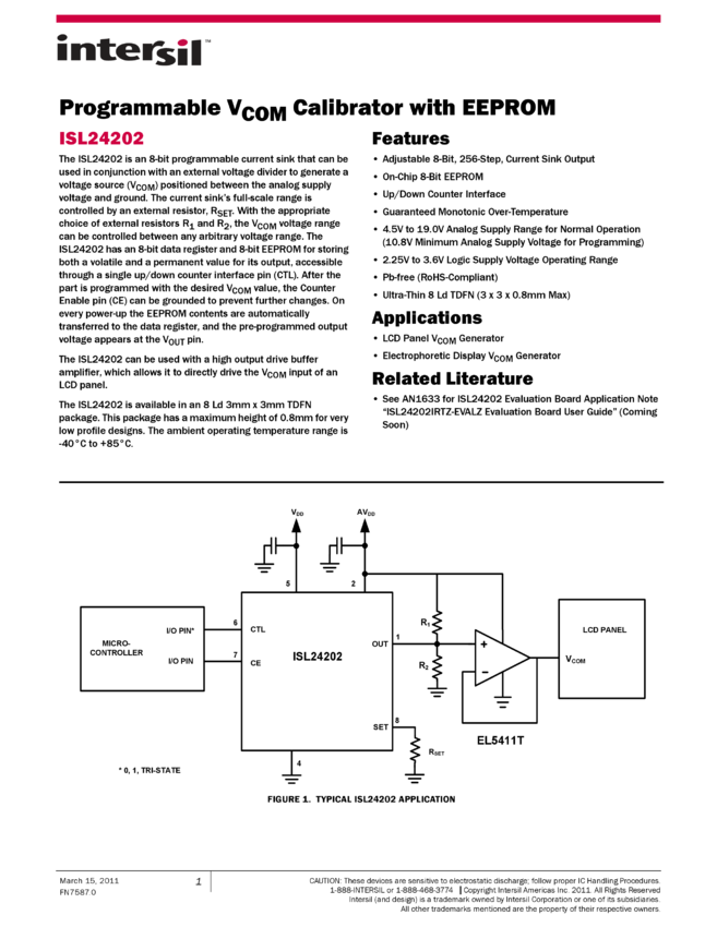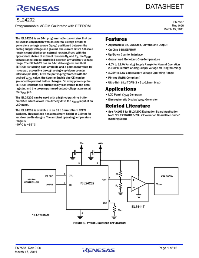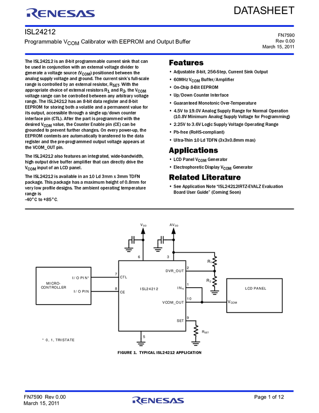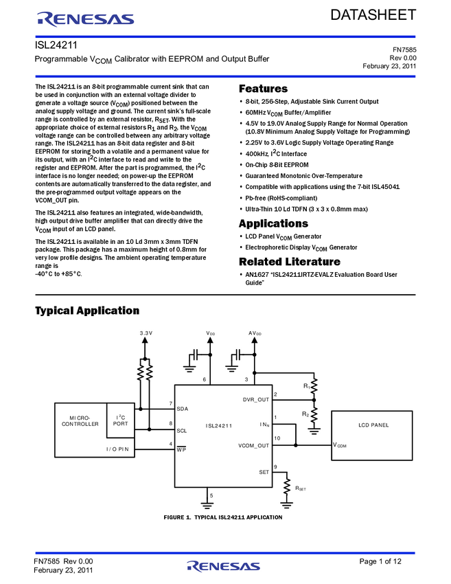EEPROM-Programmable TFT VCOM Calibrator with I²C Interface
