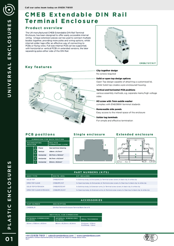 Obudowa na szynę DIN Camdenboss CMEB/1ST/KIT-CON 1 szt.