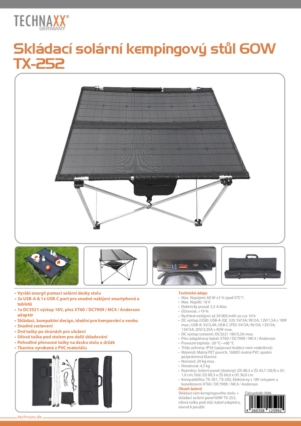 Stół turystyczny Technaxx 5084, Campingtisch TX-252, czarny, srebrny
