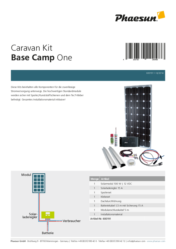 Zestaw solarny Phaesun Base Camp One 600191, 100 Wp