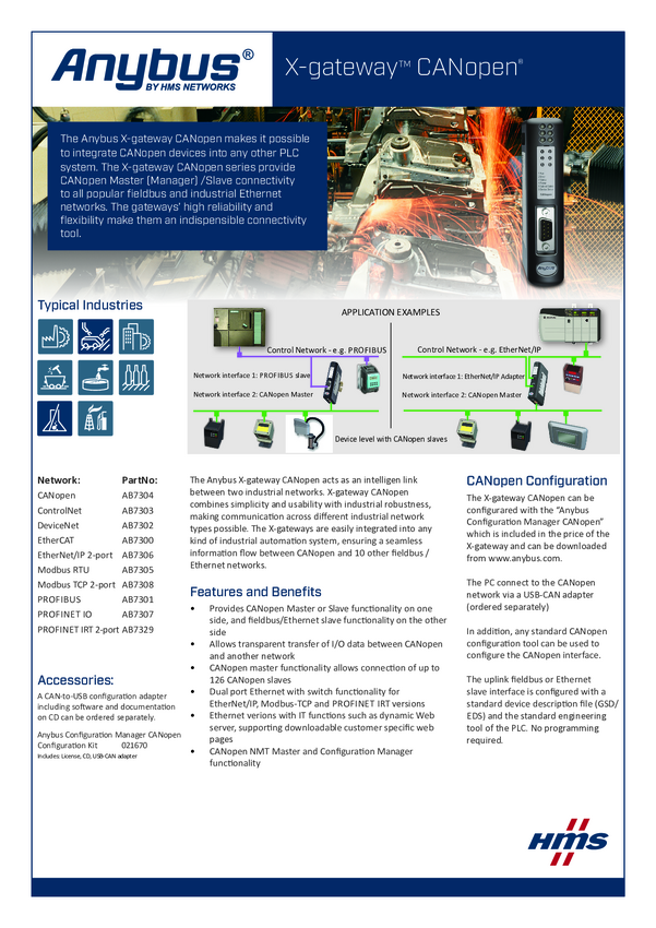 Brama sieciowa Anybus AB7306 CANopen 24 V/DC