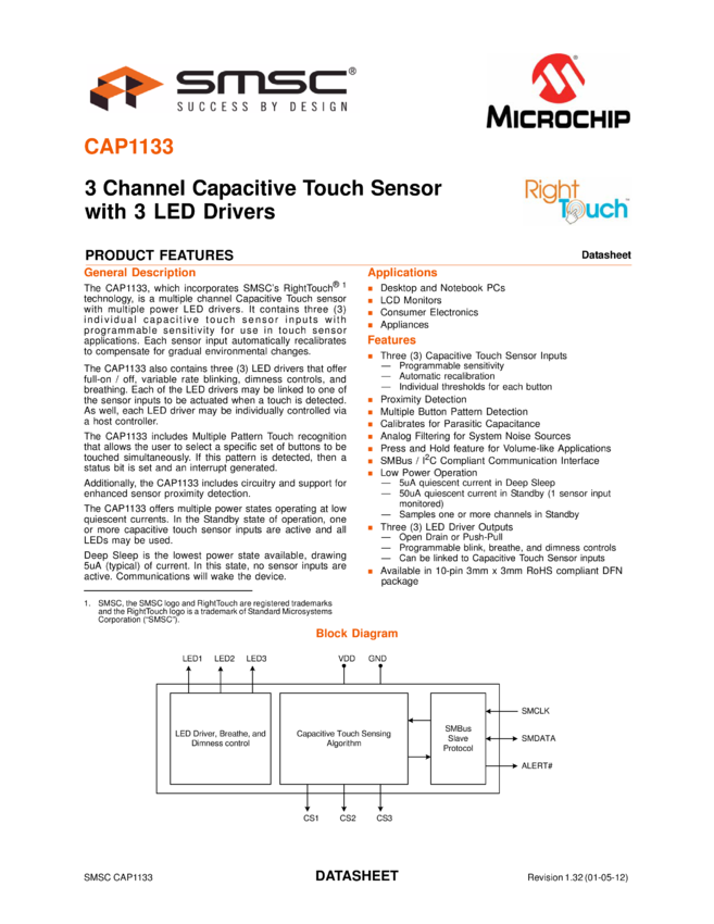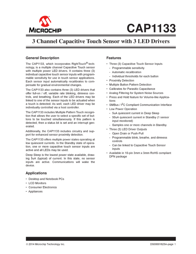 CAP1203 - 3-Channel Capacitive Touch Sensor (10/03/2013)