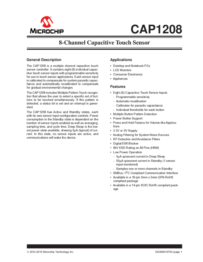 CAP1208 - 8-Channel Capacitive Touch Sensor (10/03/2013)