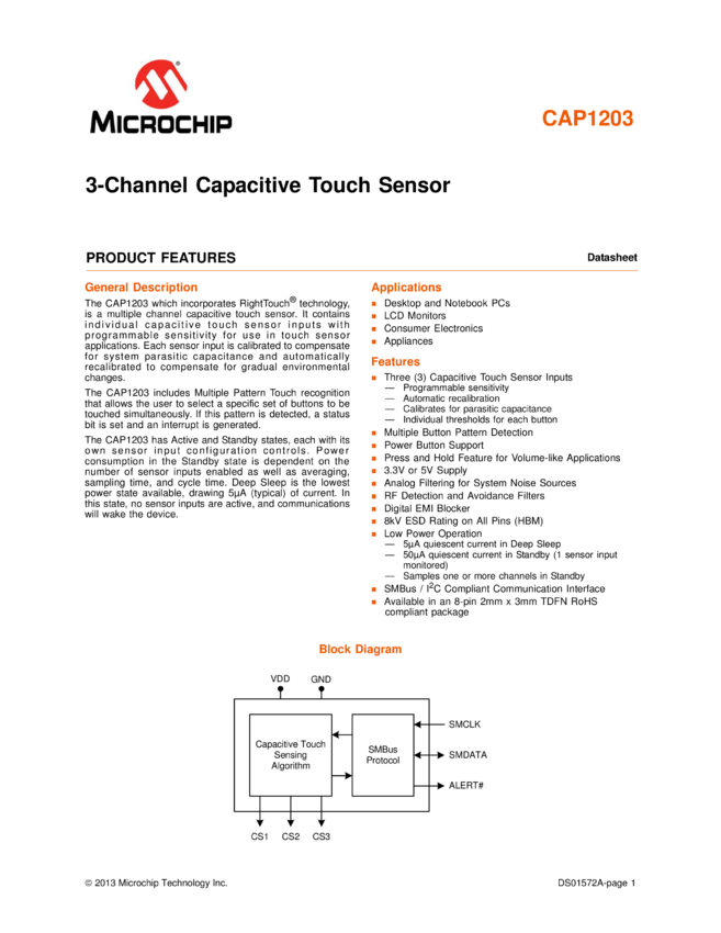 CAP1203 - 3-Channel Capacitive Touch Sensor (10/03/2013)
