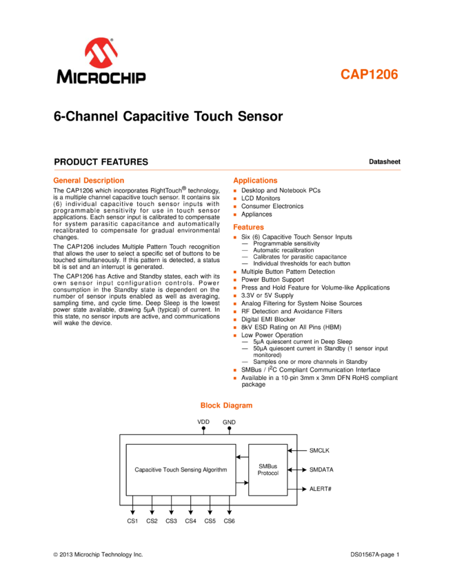 CAP1206 - 6-Channel Capacitive Touch Sensor (10/03/2013)