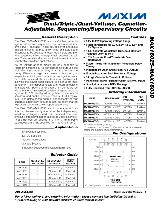 MAX16025, MAX16026, MAX16027, MAX16028, MAX16029, MAX16030 Dual-/Triple-/Quad-Voltage, Capacitor-Adjustable, Sequencing/Supervisory Circuits