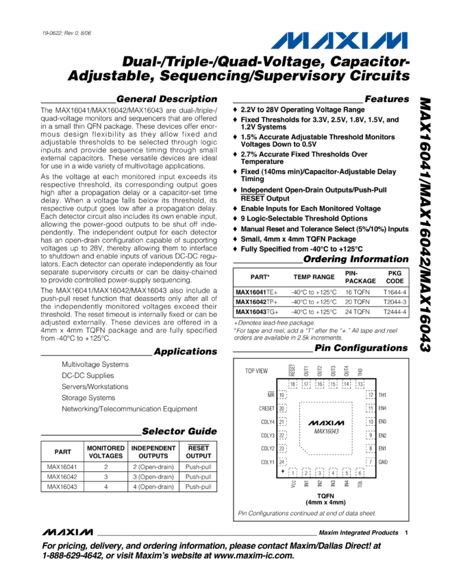 MAX16041, MAX16042, MAX16043 Dual-/Triple-/Quad-Voltage, Capacitor-Adjustable, Sequencing/Supervisory Circuits