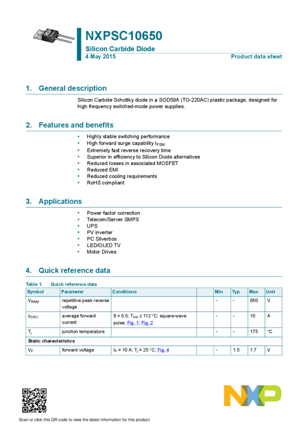 650 V power Schottky silicon carbide diode