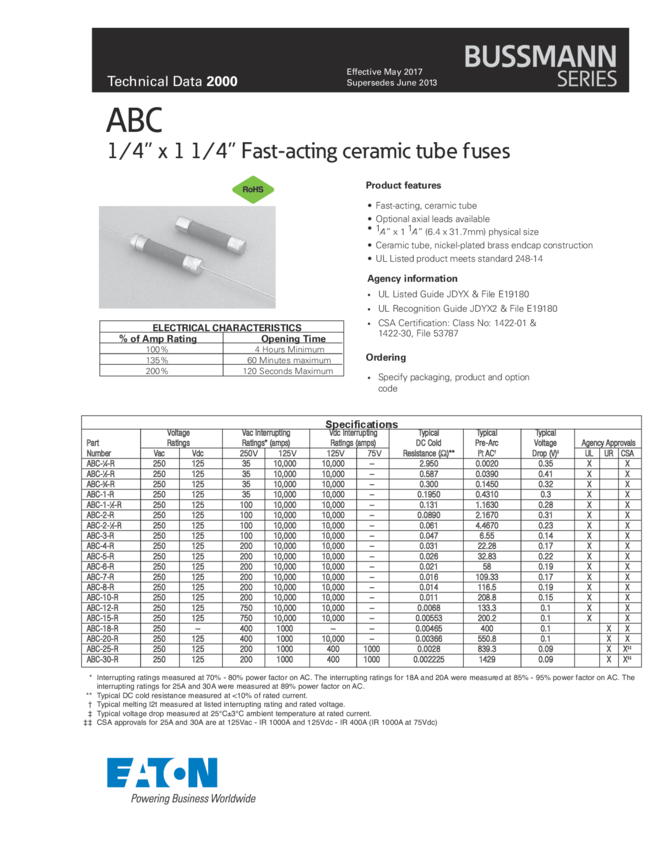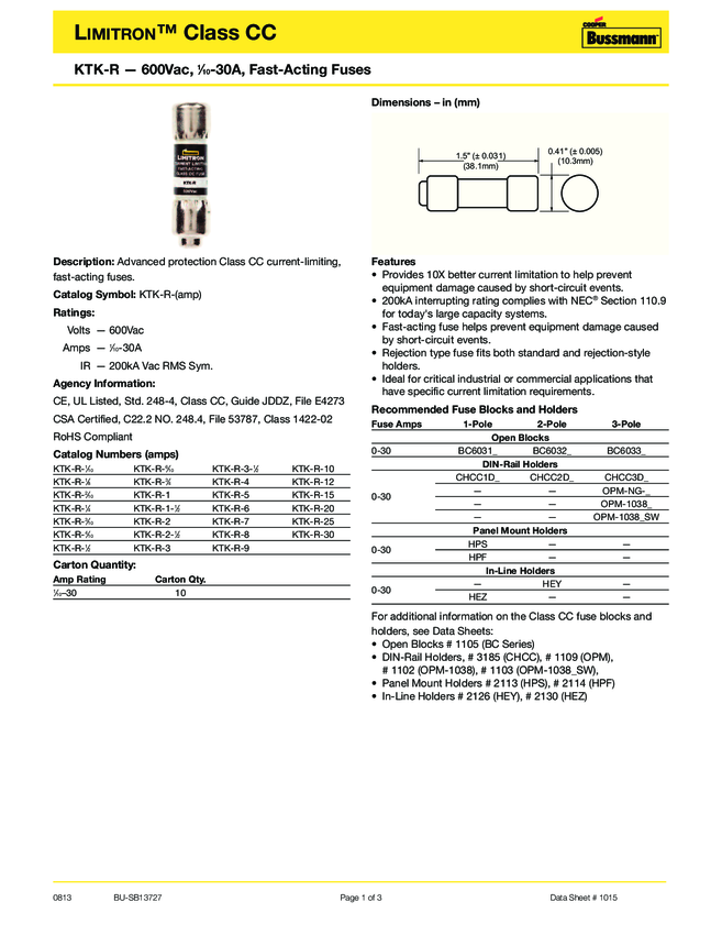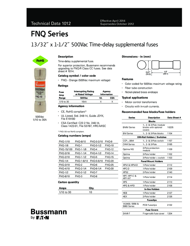 Fuse Class CC 6A 600V Fast 2-Pin Cartridge Holder Carton