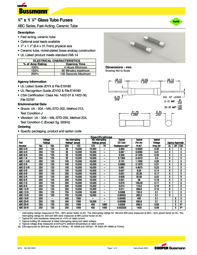 Fuse Miniature 12A 250V Fast 2-Pin Axial Through Hole Cardboard Carton