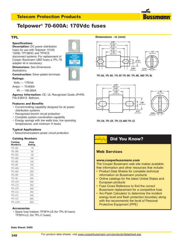 Fuse Limiter 150A 170V 2-Pin Tap Bolt Carton