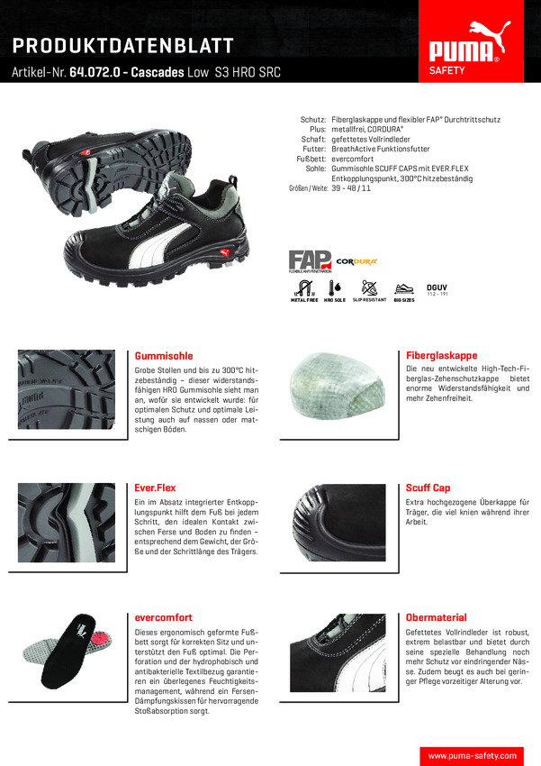 PUMA Cascades Low 640720-39 Obuwie ochronne S3 Rozmiar buta (EU): 39 czarny, biały 1 szt.