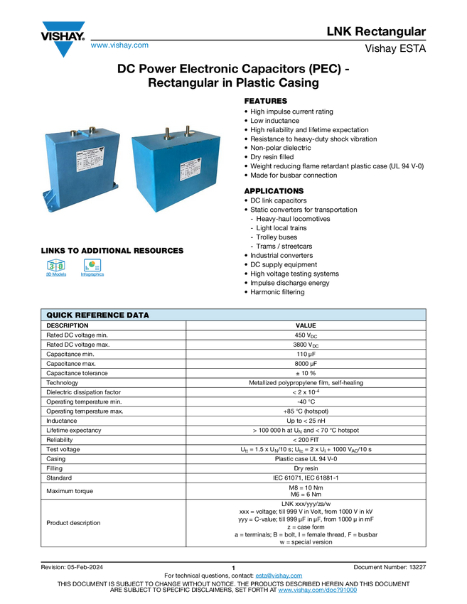 DC Power Electronic Capacitors (PEC) - Rectangular in Plastic Casing