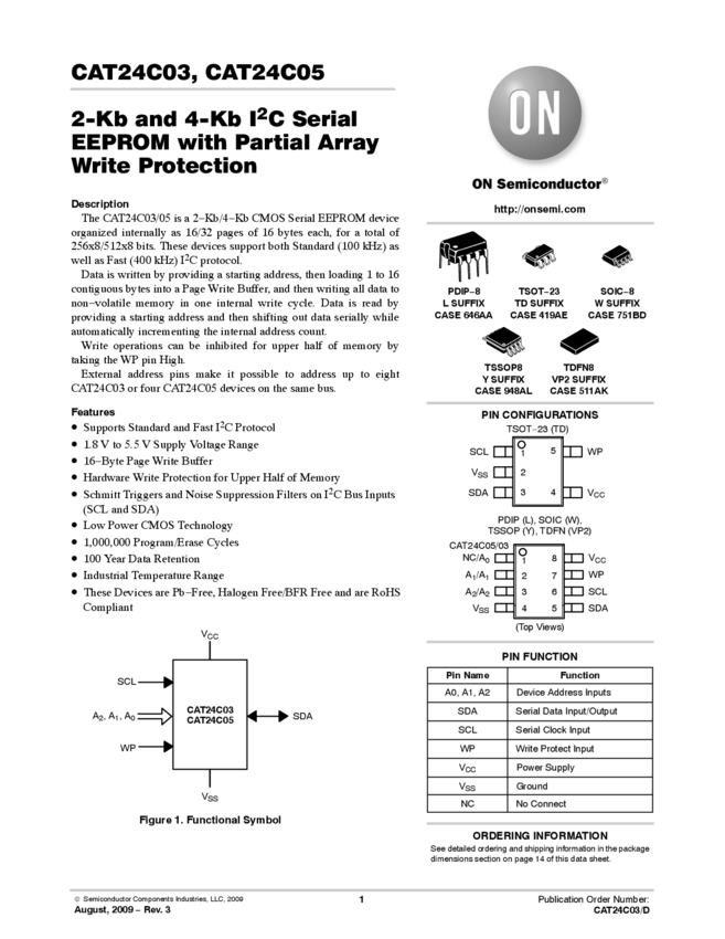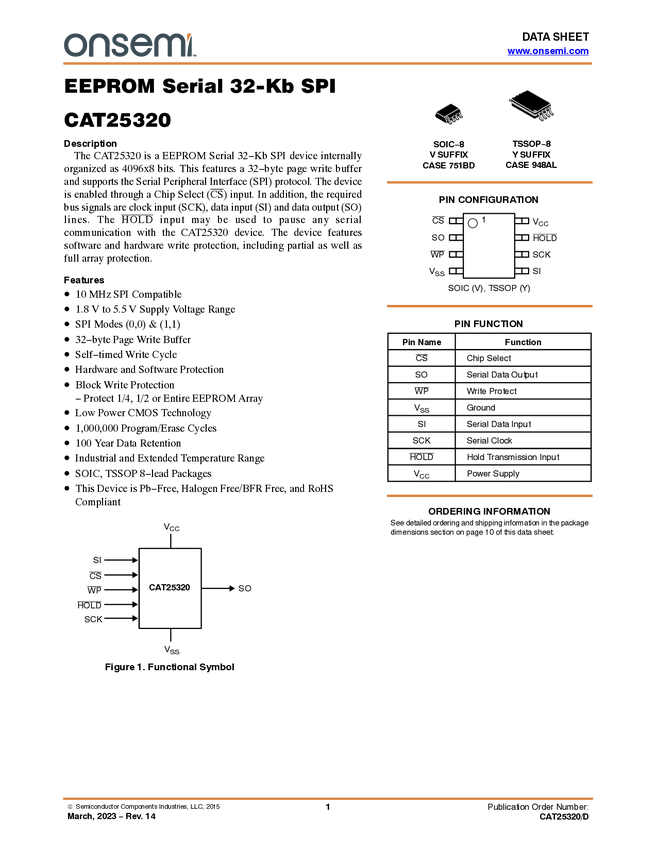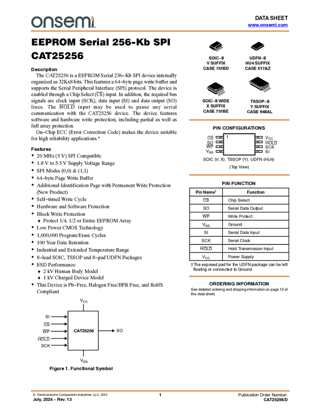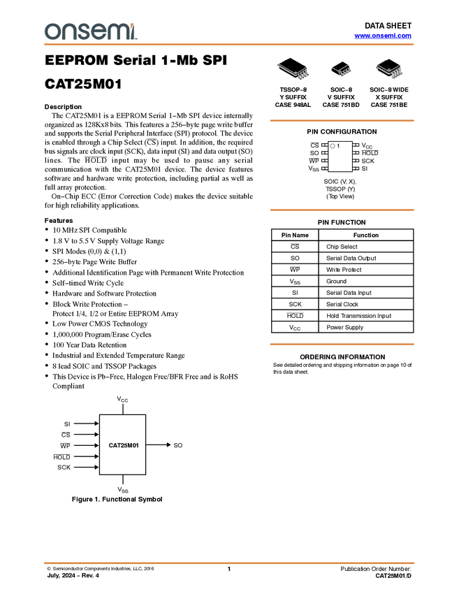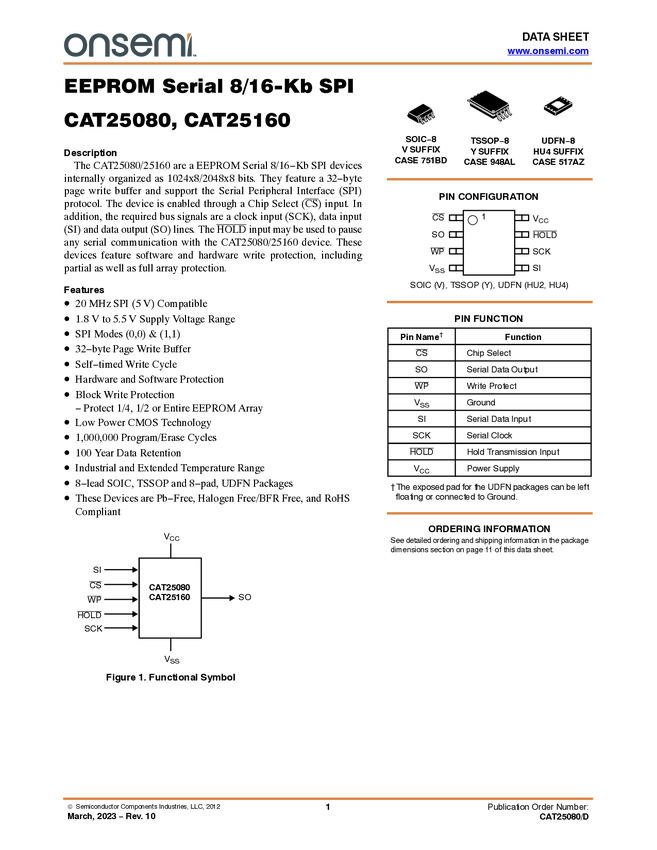 ON Semiconductor serial EEPROM with SPI interface in 8-pin package