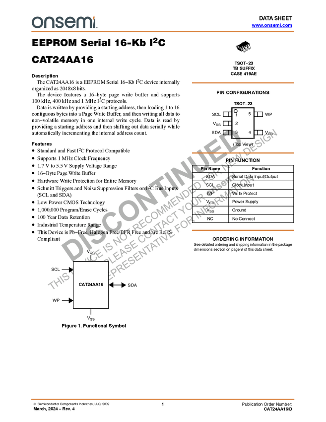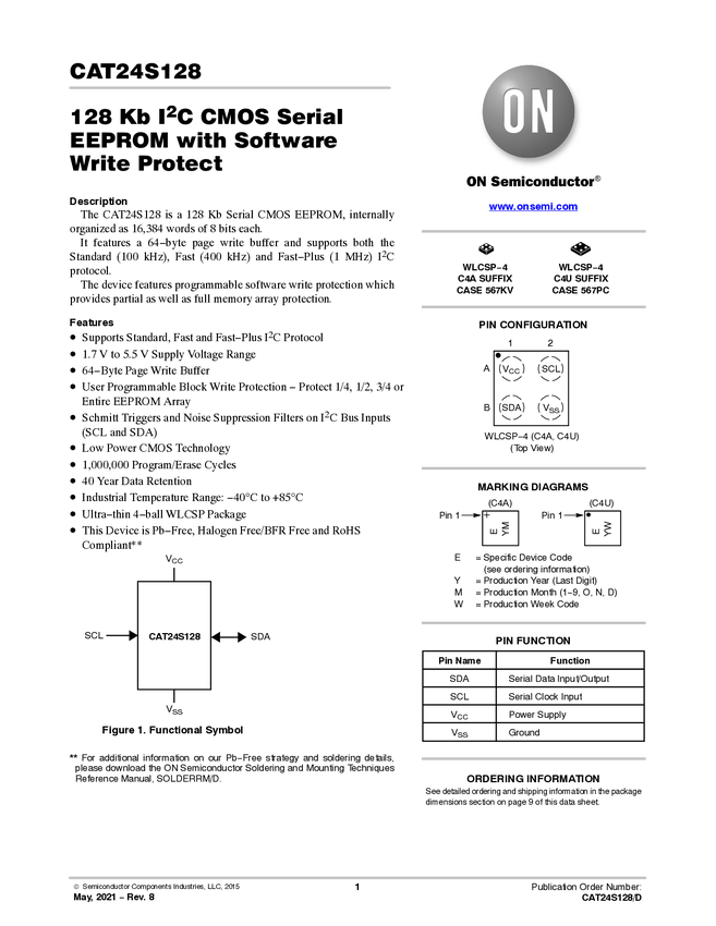 EEPROM, Serial 128-Kb I<sup>2C, with Software Write Protect