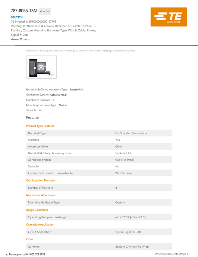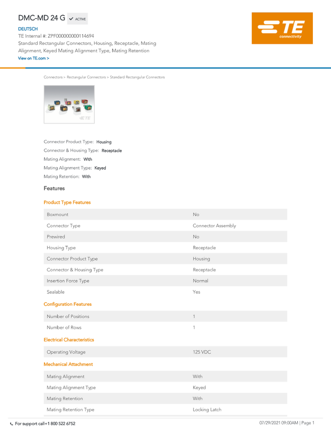 TE Connectivity TE DE DMC-M Single Cavity ZPF000000000137993, 1x -02050006739792