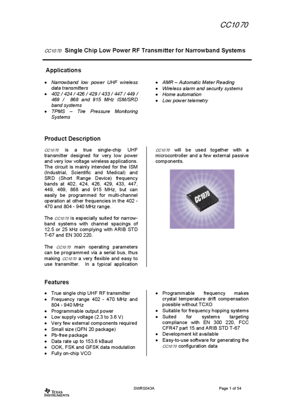 RF Transmitter FSK/GFSK/OOK 3V 20-Pin QFN EP T/R