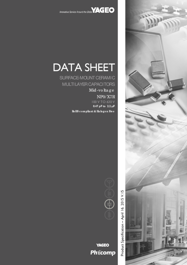 Kondensator ceramiczny SMD Yageo Chip Kerko CC1206JKX7R7BB684, 1206, 68 uF, 16 V, 5 %