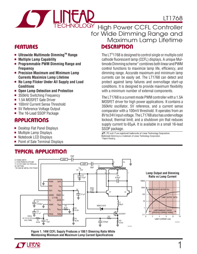 High Power CCFL Controller for Wide Dimming Range and Maximum Lamp Lifetime