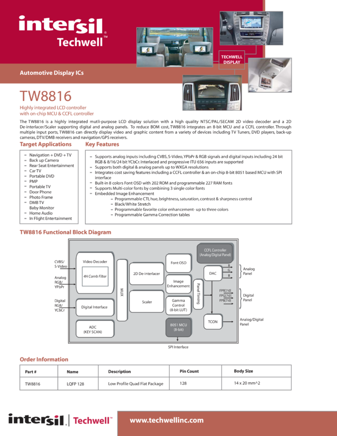 Highly Integrated LCD Controller with On-Chip MCU & CCFL Controller