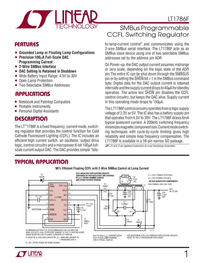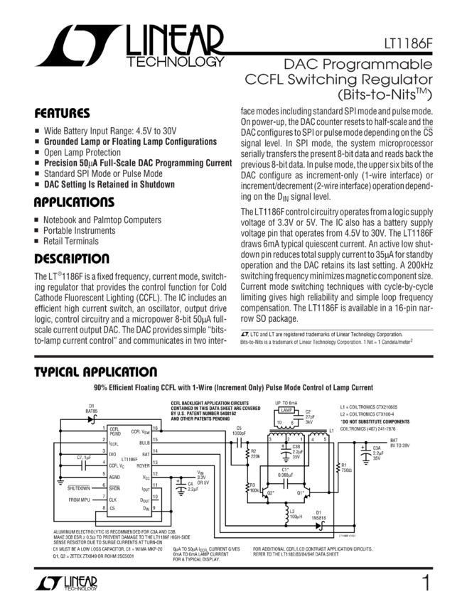 DAC Programmable CCFL Switching Regulator (Bits-to-Nits™)