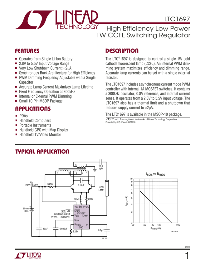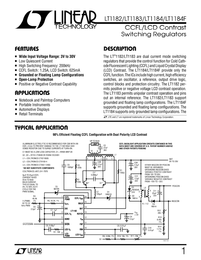 High Efficiency Low Power 1W CCFL Switching Regulator
