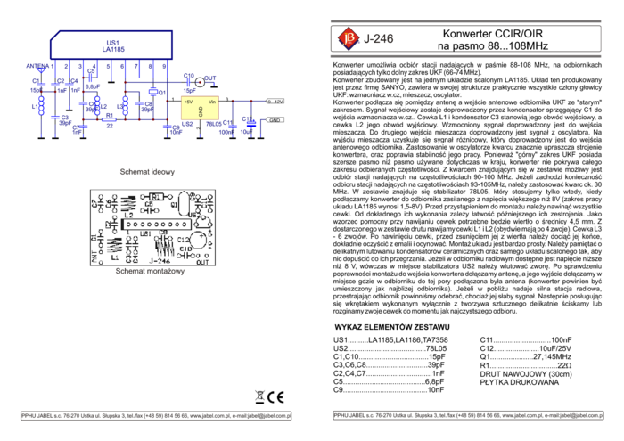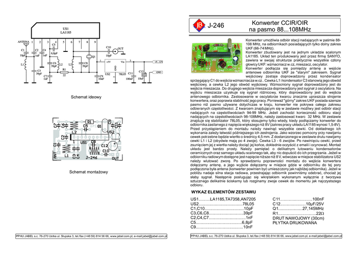 J-246 Konwerter kwarcowy CCIR/OIRT na pasmo 88-108 MHz - zestaw do montażu