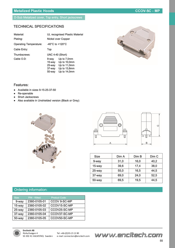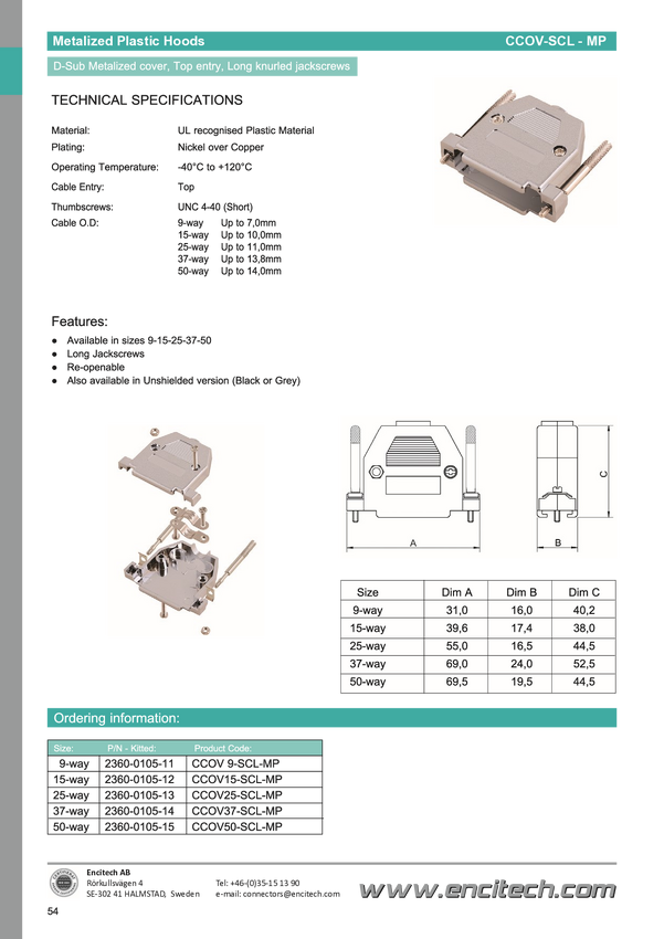 encitech 2360-0105-15 Obudowa złącza D-SUB CCOV50SCLMP, tworzywo sztuczne, 180 °, 1 szt.