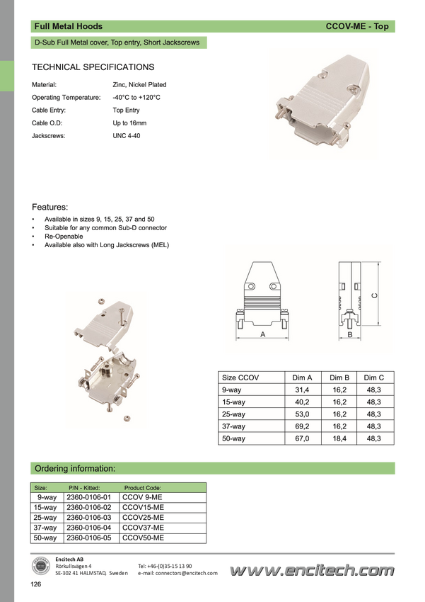 encitech CCOV09ME 2360-0106-01 Obudowa złącza D-SUB Ilość styków: 9 odlew cynkowy 180 ° metal 1 szt.