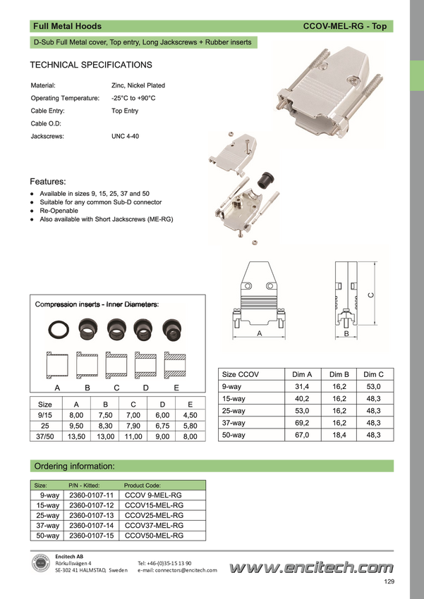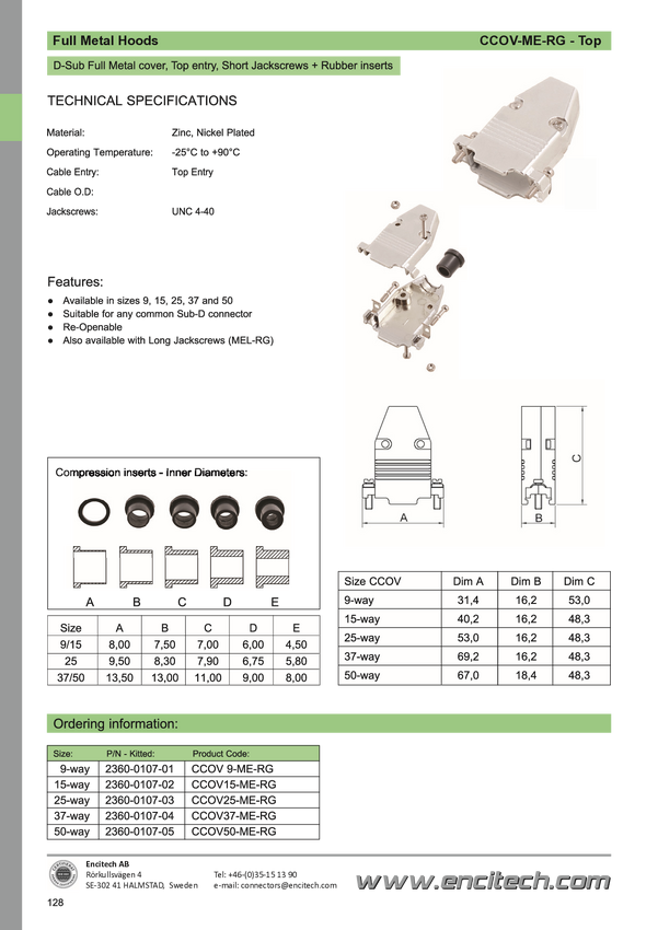 encitech 2360-0107-11 Obudowa złącza D-SUB CCOV9-MEL-RG, odlew cynkowy, 180 °, 1 szt.