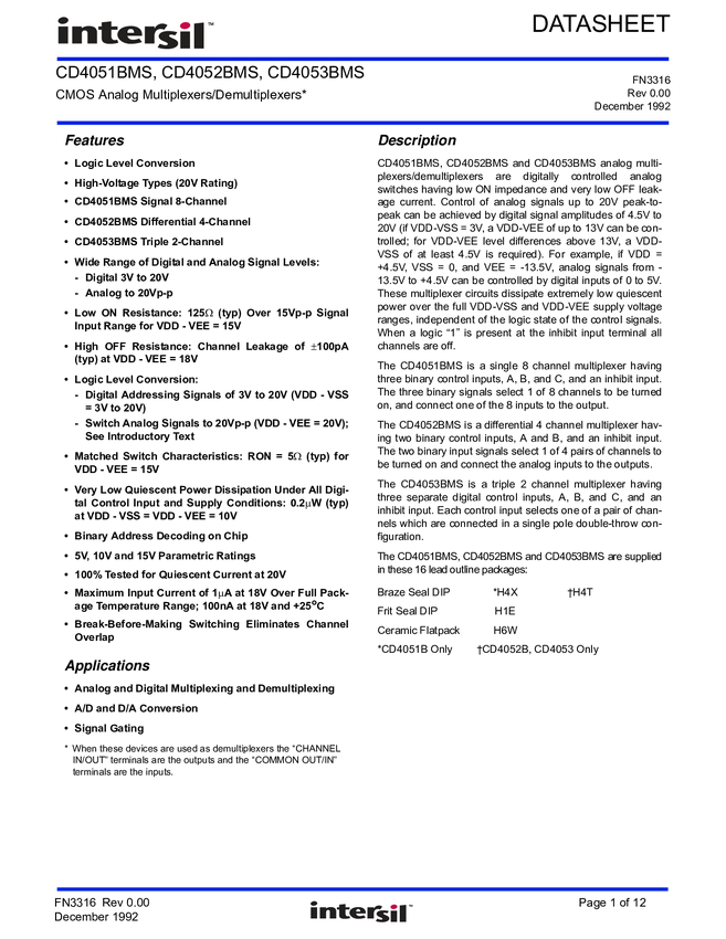 CD4052BMS
