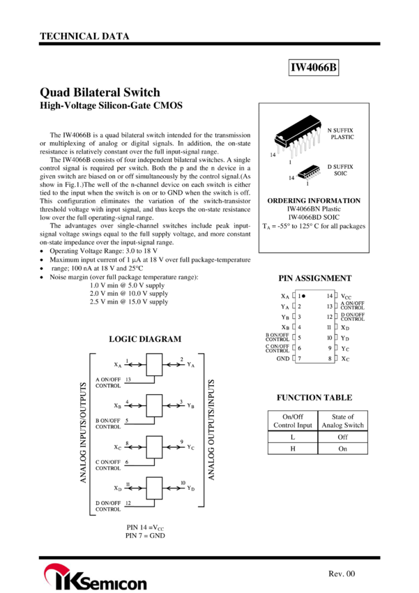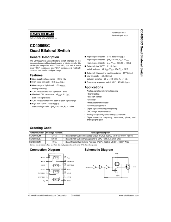 Układ scalony interfejsów - Przełącznik analogowy Texas Instruments CD4066BE, 1 szt.