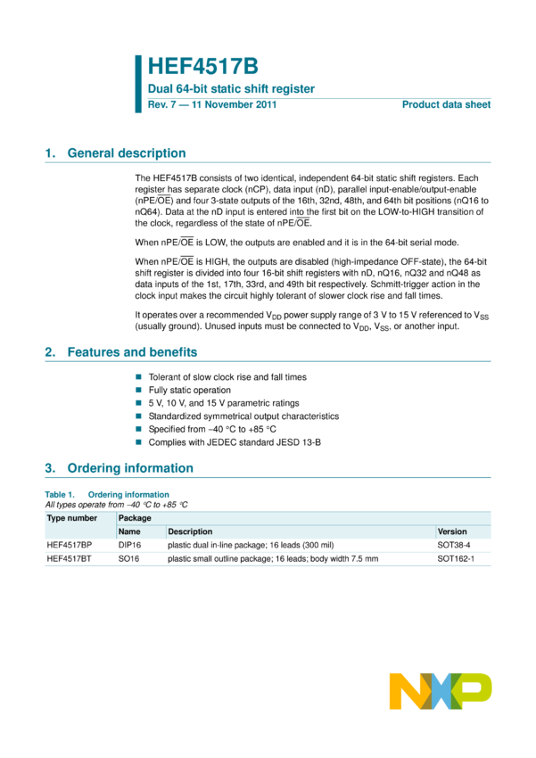 2 x 64-bit. stat. rej. przesuwny, DIL16