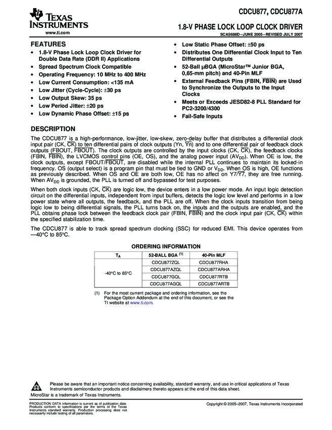 Zero Delay PLL Clock Driver Single 10MHz to 400MHz 40-Pin VQFN EP T/R
