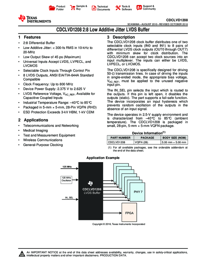 Clock Driver 2-IN LVDS 28-Pin VQFN EP T/R