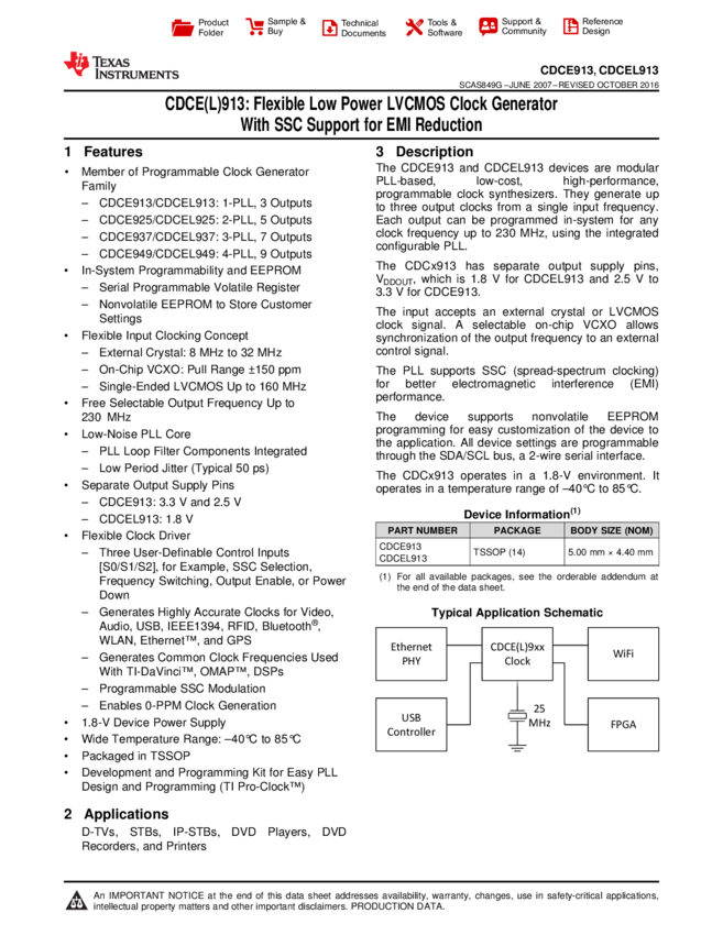 Programmable PLL Clock Synthesizer Single 14-Pin TSSOP T/R