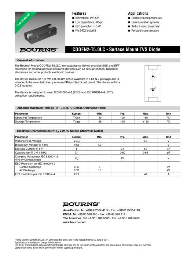 ESD Suppressor TVS 15KV 2-Pin DFN T/R