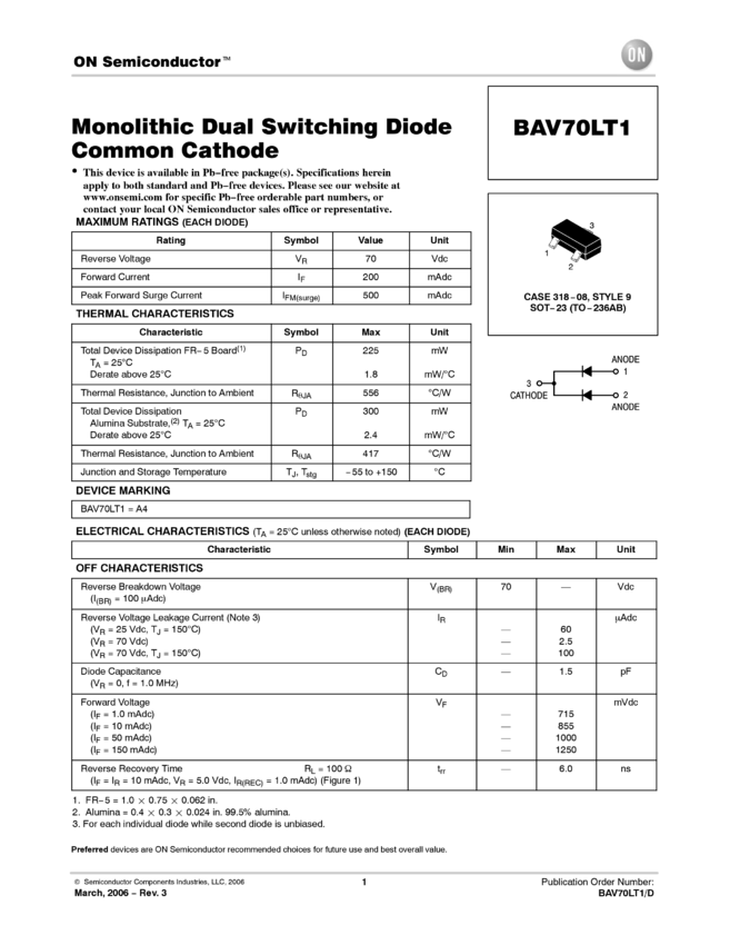 2 x dioda 200mA, 70V, 6ns, SOT23 CDIL