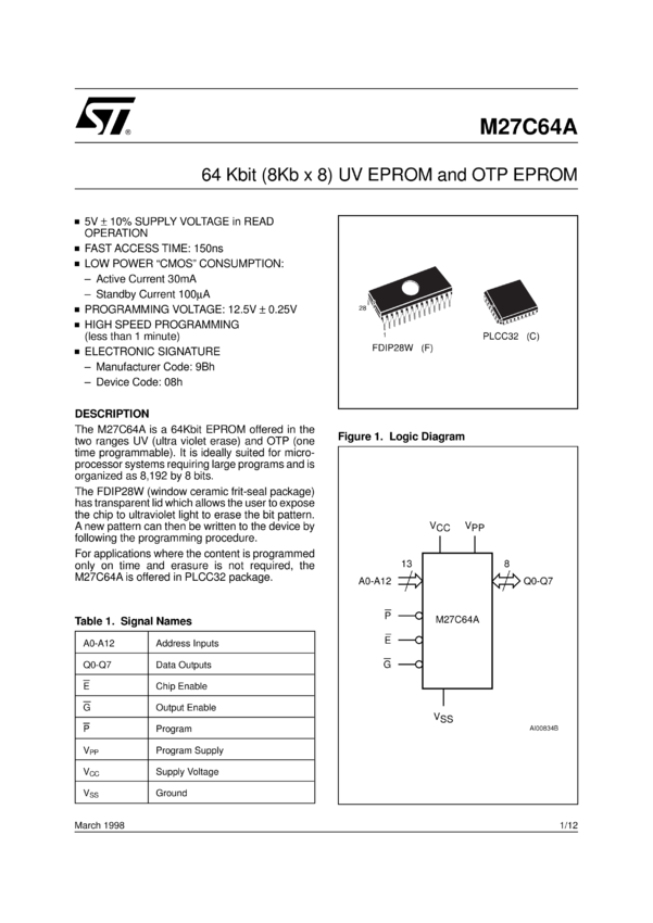 EPROM, 64Kb, 8Kbx8, CDIL28