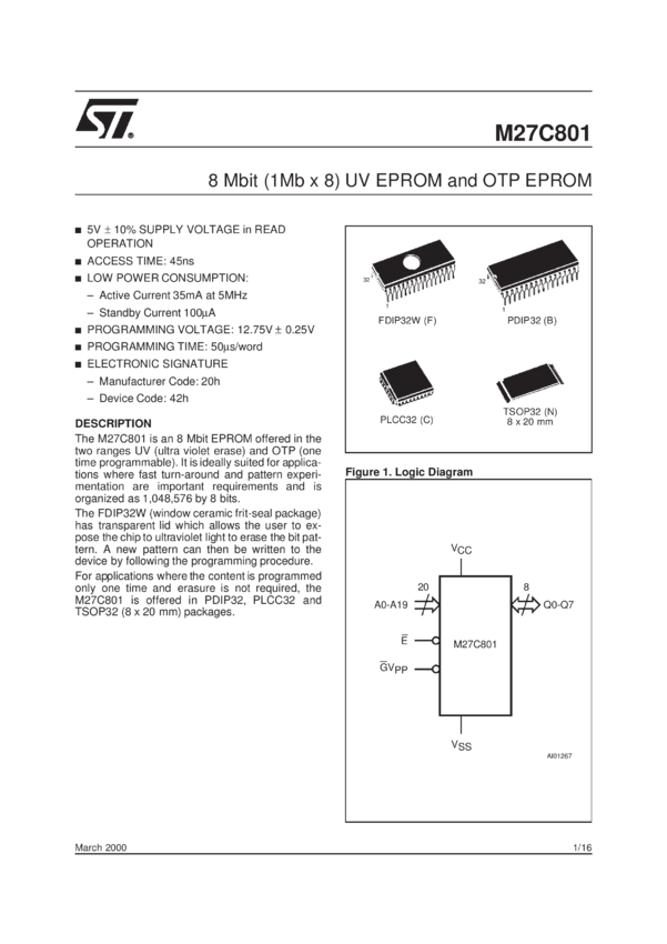 EPROM, 8Mb, 1Mbx8, CDIL32