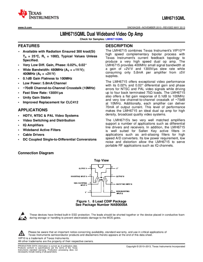 OP Amp Dual Current Fdbk ±6V 8-Pin CDIP Rail