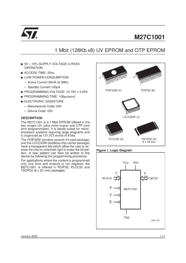 EPROM, 1Mb, 128Kbx8, CDIL32